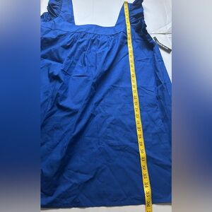 Channeling 1950’s fun-in-the-sun styling, this royal blue babydoll dress is simply adorable! Made from a cotton poplin weave, this effortlessly stylish sundress boasts a flattering square neckline, coquettish ruffle sleeves, and gathered detailing at the yoke that flows beautifully into a relaxed fit, above-the-knee skirt.