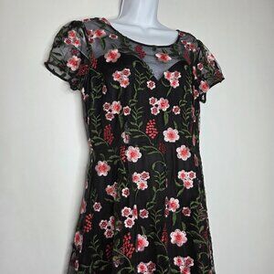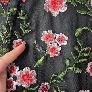 Modcloth Womens Black Mesh Floral Embroidered Dress Size L Feminine Fairy Whimsy
