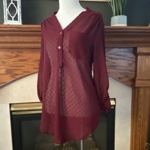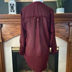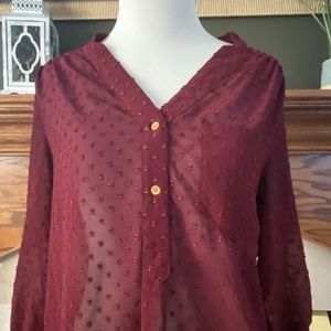 Modcloth Women's Burgundy Textured Semi Sheer Popover Casual BlouseTop Sz. S