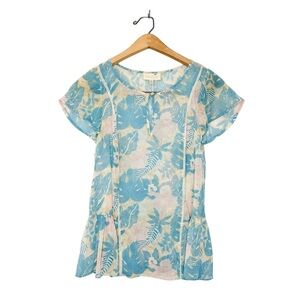 Modcloth Womens Colorful Tropical Floral Print Semi Sheer Short Sleeve Blouse XS
