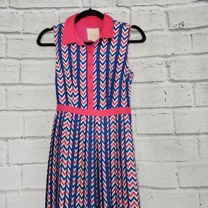 Modcloth Women's Hot Pink/Blue Geometric-Print Sleeveless Collared Dress Size XS