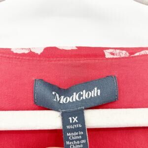 Modcloth Womens Retro Pinup Valentines Day Scoop Neck Rose Floral Dress in Red. Plus Size 1X.