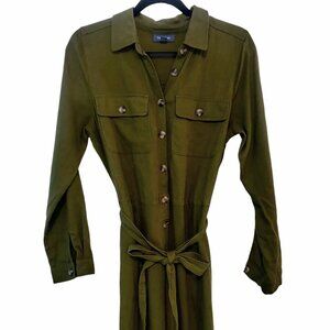 Modcloth Womens Size M Green Linen Viscose Roll Tab Sleeves Tie Belt Jumpsuit