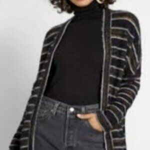 Modcloth Women's Size Small Striped Black Sweater Cardigan Open Pockets