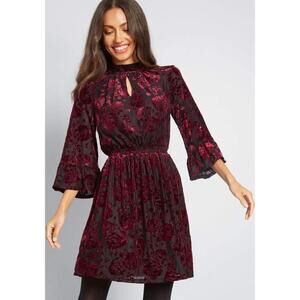 Modcloth Women's Very Visionary Mock Neck Burnout Velvet Dress Burgundy Medium