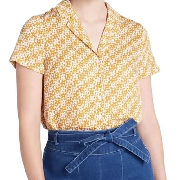 Modcloth Womens Yellow and White Floral Short Sleeve Button Down Shirt Size XL