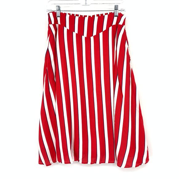 Modcloth X Collectif Ornella Yacht Stripe Skirt Womens 8 Red White Blue Stripe