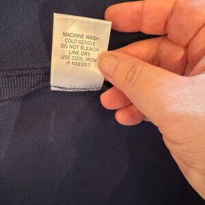 The seams at the torso of this navy dress are very flattering and lead to a flattering A-line skirt that drapes nicely.
