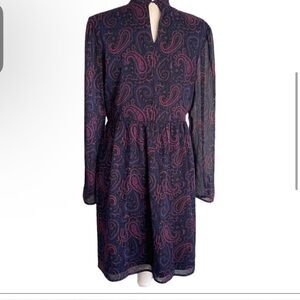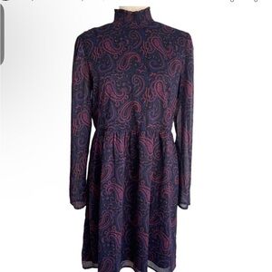 Modcloth navy blue paisley print ruffled mockneck long sleeve dress size 2X
