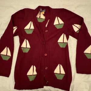 Modcloth quirky sailboat burgundy alpaca cardigan, xs