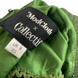 Modcloth x Collectif Dress Size XS US 4 UK8 Herringbone Fit Flare Green Pockets