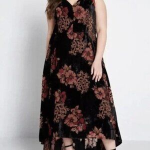 Modcloth x Collectif London Isabella Velvet Floral Dress, UK 18