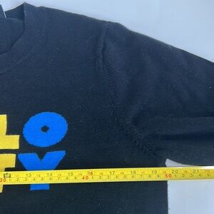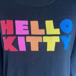 Modcloth x Hello Kitty Oh-So-Supercute black long sleeve sweater w vibrant rainbow “Hello Kitty.” Retro-inspired sweater. Still on Modcloth website.