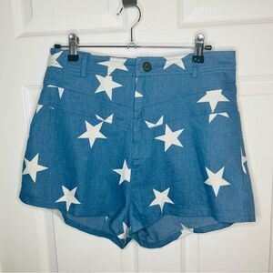 Modcloth All Stars No Stripes HighRise Denim Shorts Blue Star Print Size 8
