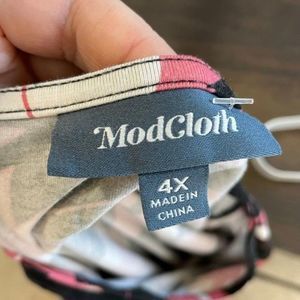 Modcloth black tulip dress in size 4X. New with tags. Viscose 95%, spandex 5%, hand wash. Short sleeves, elastic waist, lots of stretch. Great dress for warmer days.