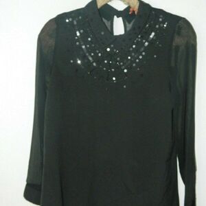 Modcloth Blouse Black Sheer Embellished  Medium‎