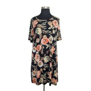 Modcloth Gilli 3X Black Pink Floral Short Sleeve Shift Dress Retro Cottagecore Tie Back Evening Date Night