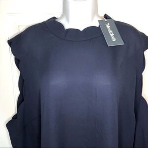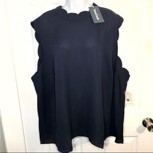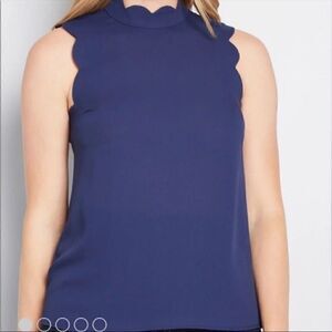 Modcloth Outstanding Scallops Sleeveless Blouse Navy Blue Size 4X. Scalloped edge collar and arm holes. Mockneck. Sleeveless. Polyester. NWT