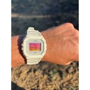 This fan-favorite square digital sports watch now features a custom Sunset Light Filter that gives the display a glowing orange-red backlight — perfect for a unique evening look.