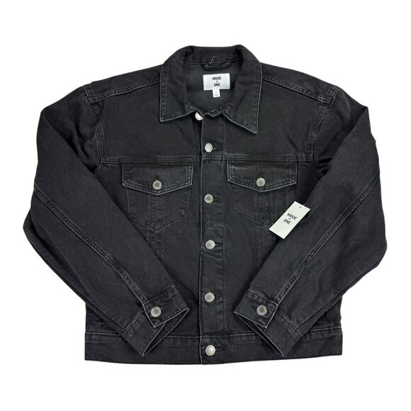 Mode of One Mens Regular Fit Denim Trucker Jacket Black S