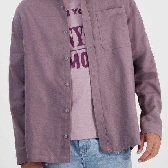 Mode of One Men's Relaxed Fit Flannel Wovens Shirt Soft Moon Size L