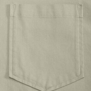 Long sleeves with button cuffs; patch pocket at left chest; shirttail hem
