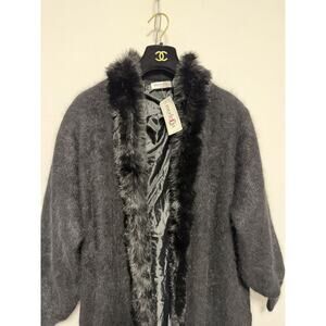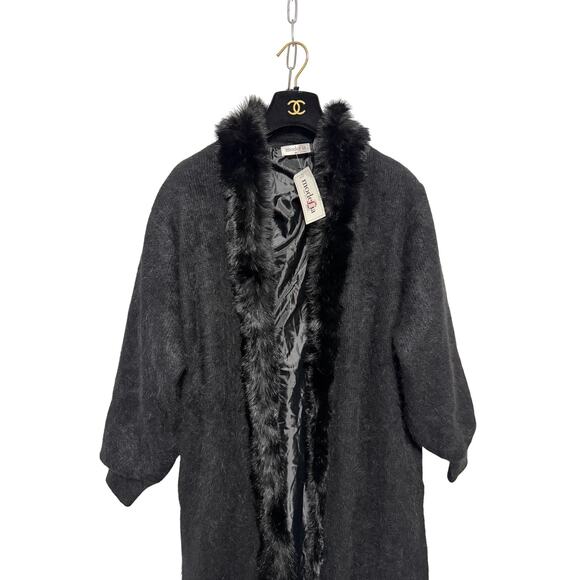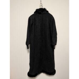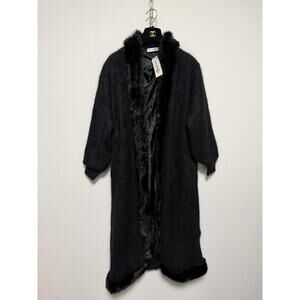 Modefia Coat Womens Medium Large Black Angora Blend Faux Fur Trim Long Duster
