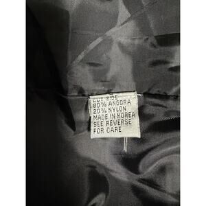 Color: Black angora-blend knit exterior with black satin-style lining.