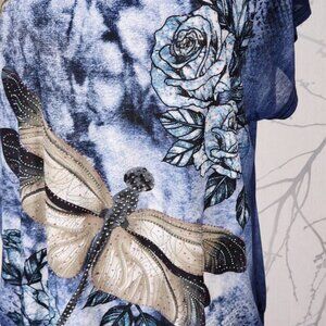 Model France Artsy Dragonfly Rhinestone Stretch Knit Tunic