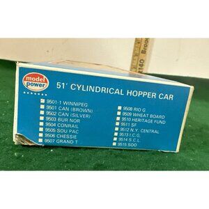 This Model Power HO Railroad Train 51' Cylindrical Hopper Car is a great addition to any model train collection. Built in 1983, this yellow hopper car is ready to go and pre-built for easy assembly. It features a transportation theme and is made of durable plastic material. The car is an HO gauge and was manufactured in Hong Kong. Perfect for model railroads and trains, this hopper car is a must-have for any collector.