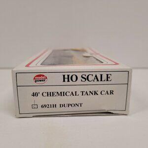 Vintage Model Power HO Scale 40' Chemical Tank Car 6921H Dupont Santa Fe New Old Stock Plastic with a Metal Chassis. Listed as used, but looks unused. 6921H Dupont. Comes in original box and packaging with minimal wear.