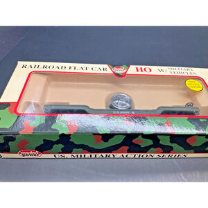 Model Power Military HO Railroad Flat Train Car Search Light w/knuckle couplers