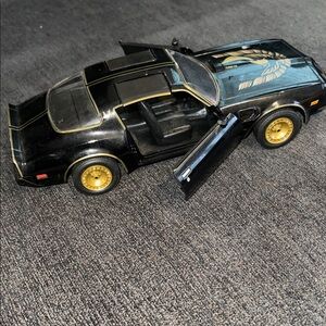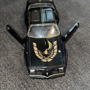 This sleek black and gold toy car is perfect for young car enthusiasts. Its detailed design and vibrant colors make it a standout addition to any toy collection. 1980 Pontiac firebird