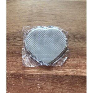Modela Silver Heart Shaped Glitter Compact Mirror Travel Size NWT.