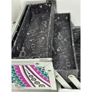 Stylish Modella Belle Boho multi-tier vanity case featuring a colorful paisley design. Perfect for organizing and storing makeup, jewelry, cosmetics, or travel essentials. Durable hard shell with secure latches and a carry handle.