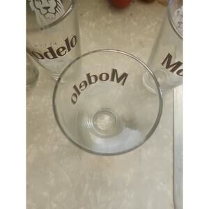 Enhance your drinking experience with this set of four Modelo Cerveza pint glasses. The glasses feature the iconic Modelo Lion logo, adding a touch of breweriana to your collection. Perfect for beer enthusiasts, these glasses are made to enjoy your favorite brew in style.