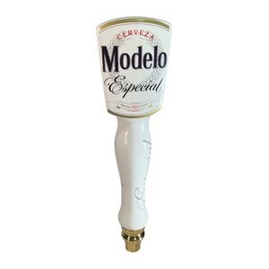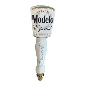 >> No Tag and Box << The Modelo Especial Cerveza Topper Logo Beer Tap Handle is a 10 3/4” tall plastic knob featuring the distinctive Modelo brand. This beer tap handle is designed for use with beer taps and adds a touch of breweriana collectible to any home bar or man cave. Perfect for beer enthusiasts looking to personalize their beer dispensing setup with a unique and stylish touch.