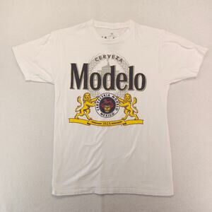 Modelo Short Sleeve Crew Neck Graphic T Shirt Mens Size Medium M White