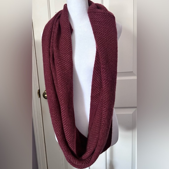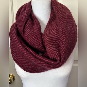 Modena infinity scarf with chevron pattern. Burgundy colored. 31" long, 19" wide. 100% acrylic.