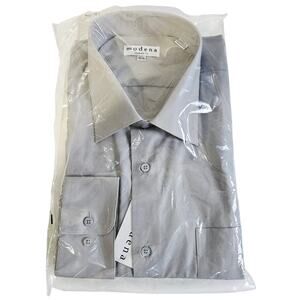 Modena Men's Size 17.5 Neck Button Up Dress Shirt Light Grey Pocket Front NWT