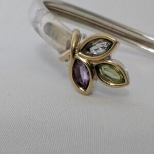 Modena Sterling Silver Bangle Bracelet 7.5" Marquise Natural Gemstones Flexible