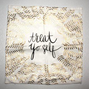 **Note: This is for 3 empty pillow cases, zippered sides, measure approx. 17 inches by 17 inches, each pillow case has Gold Self Love Verbiage on it: LOVE / TREAT YO SELF / GOOD VIBES, modern day feel, colors: Gold & White, last two pictures shows a slight discoloration on the back of GOOD TIMES pillow. Please make sure you look at all the pictures for details.