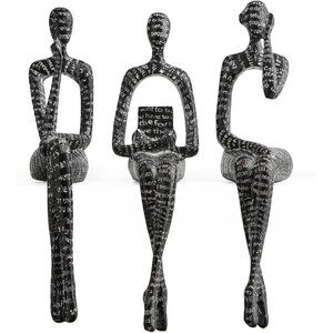 Modern Abstract Art Figurines Black Thinker Sculpture for Bookshelf Desk