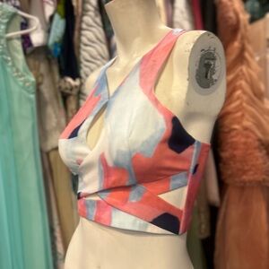 Top is cropped with a t- back and cut outs