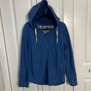Modern Amusement Blue Hoodie Short Jacket Pockets Size Medium Aztec Pattern