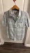 Chambray Aztec print by Modern Amusement. Heavyweight cotton, short sleeves. Yellowing under one arm but can be lifted w some TLC.