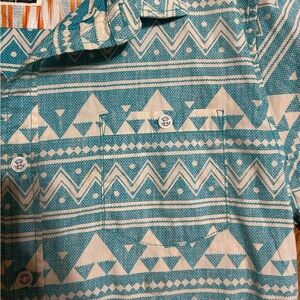 Modern Amusement Men Sz L Aztec Design Button Up Teal White 100% Cotton