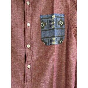 Modern Amusement Mens Cotton Linen Blend Aztec Pocket Shirt Button Up Large L