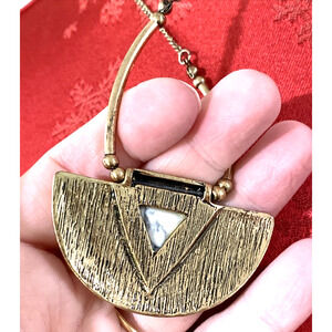 Modern Art To Wear Gold Bib Statement Necklace Faux Stone Pendant Semi Circle