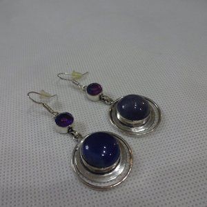 Modern "BLUE AVENTURINE & BI-COLOR TOURMALINE" Handmade Sterling Dangle Earrings (1 1/2" Drop) #568A